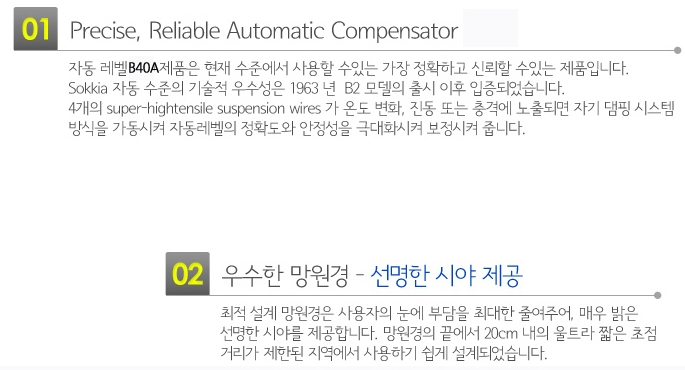 정리하자면, 소키아 자동레벨기 B40A는