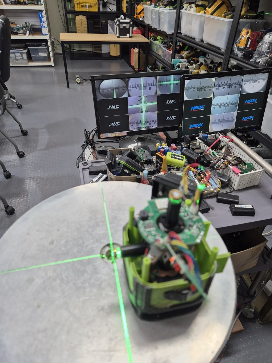 전용 교정 장비를 이용해 각도 오차와 수평 편차를 보정하고, 최종 테스트를 통해 측정값이 기준 내에 들어오는지 확인합니다.